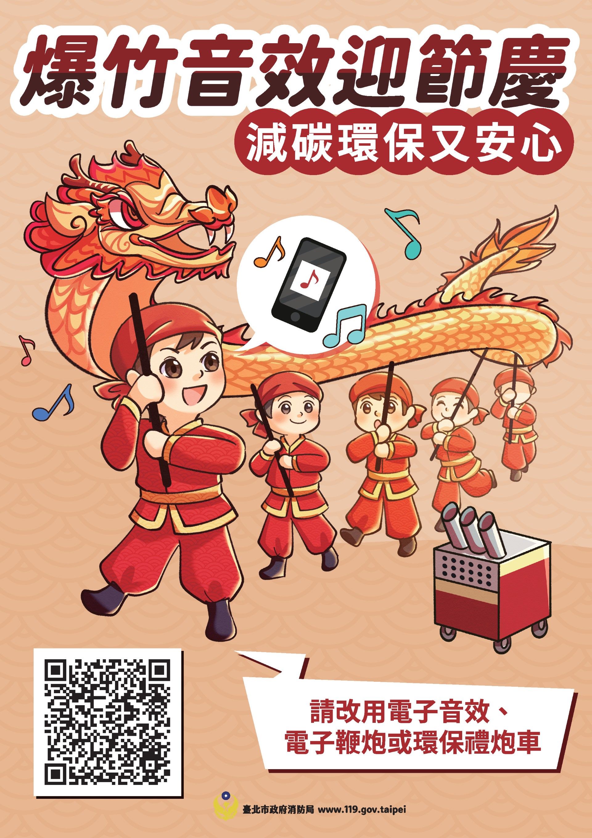 施放爆竹煙火會產生空污及噪音,可以用爆竹煙火電子音效替代!