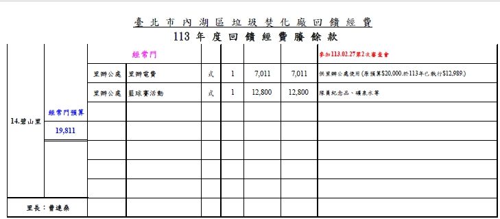 碧山里114年焚化廠回饋經費