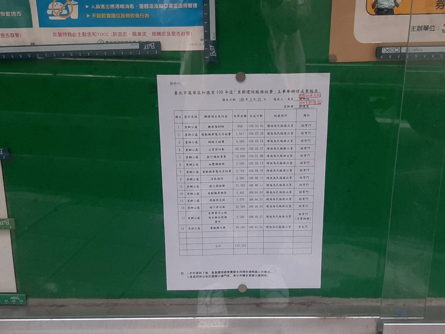上半年辦理成果表公告於里公告欄