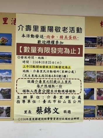 114年度介壽里重陽節活動花絮照片