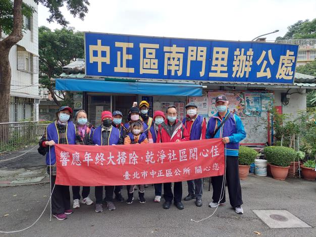 南門里111年年終大掃除 時間:111年1月12日上午9時00分 地點:里辦周邊巷道 參加人員:臺北市清潔隊泉州分...