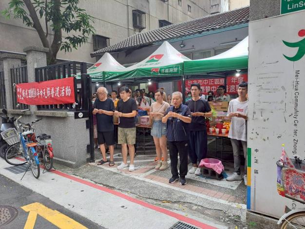 臺北市中正區梅花里114年中元普渡活動時間:114年8月31日下午14點00分地點:臺北市林森北路5巷4號(梅花區民活動...