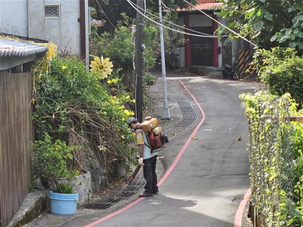 時間:114年9月9日地點:林泉里杏林巷路段消毒為清除登革熱病媒蚊主要孳生場所、棄置之積水容器等,以降低病媒蚊密度等級,...